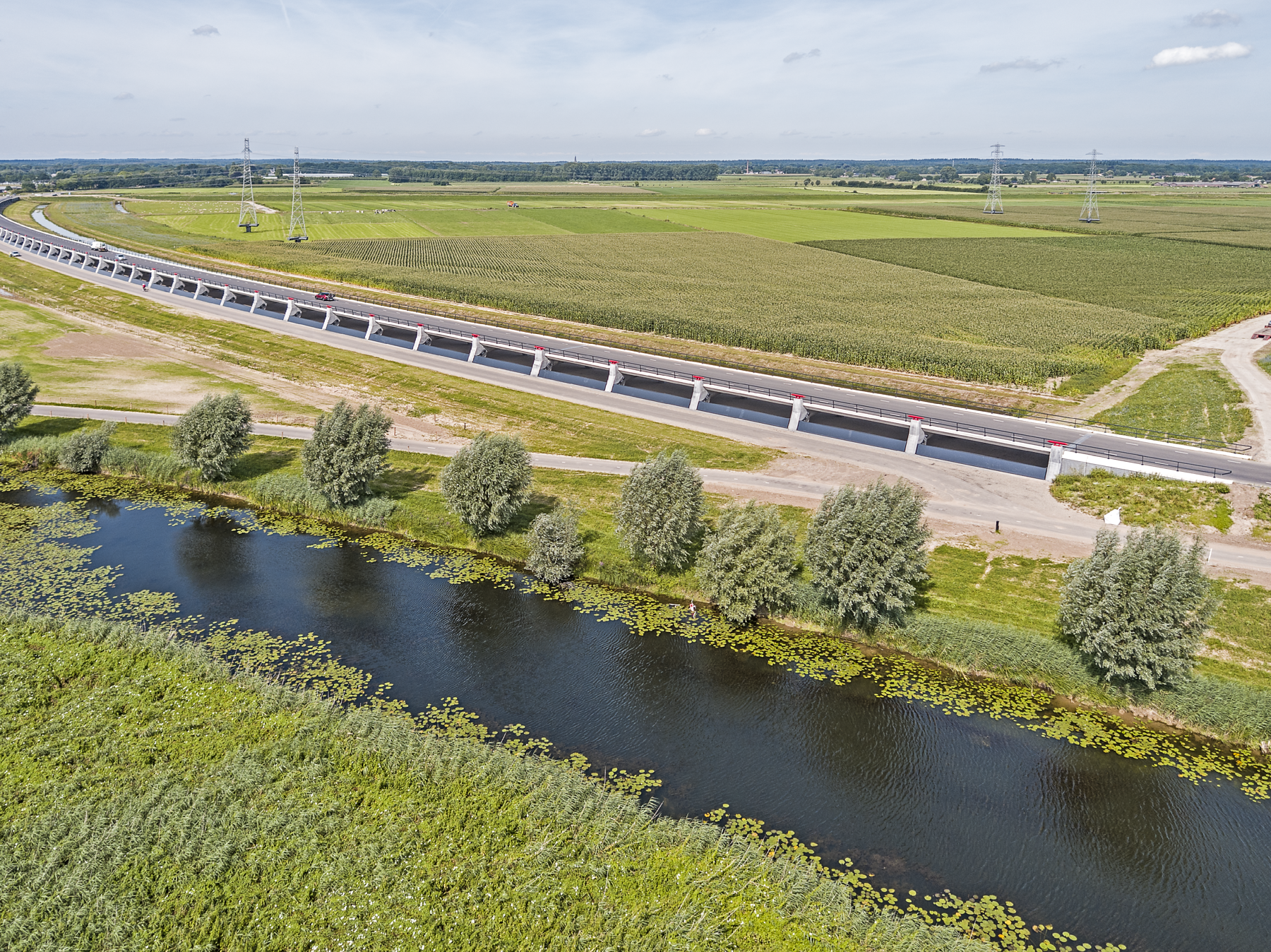 De hoogwatergeul is niet gegraven, maar gemaakt door twee dijken aan te leggen. De geul is circa 8 kilometer lang. De breedte van de geul tussen de dijken varieert van 550 tot 1.500 meter.