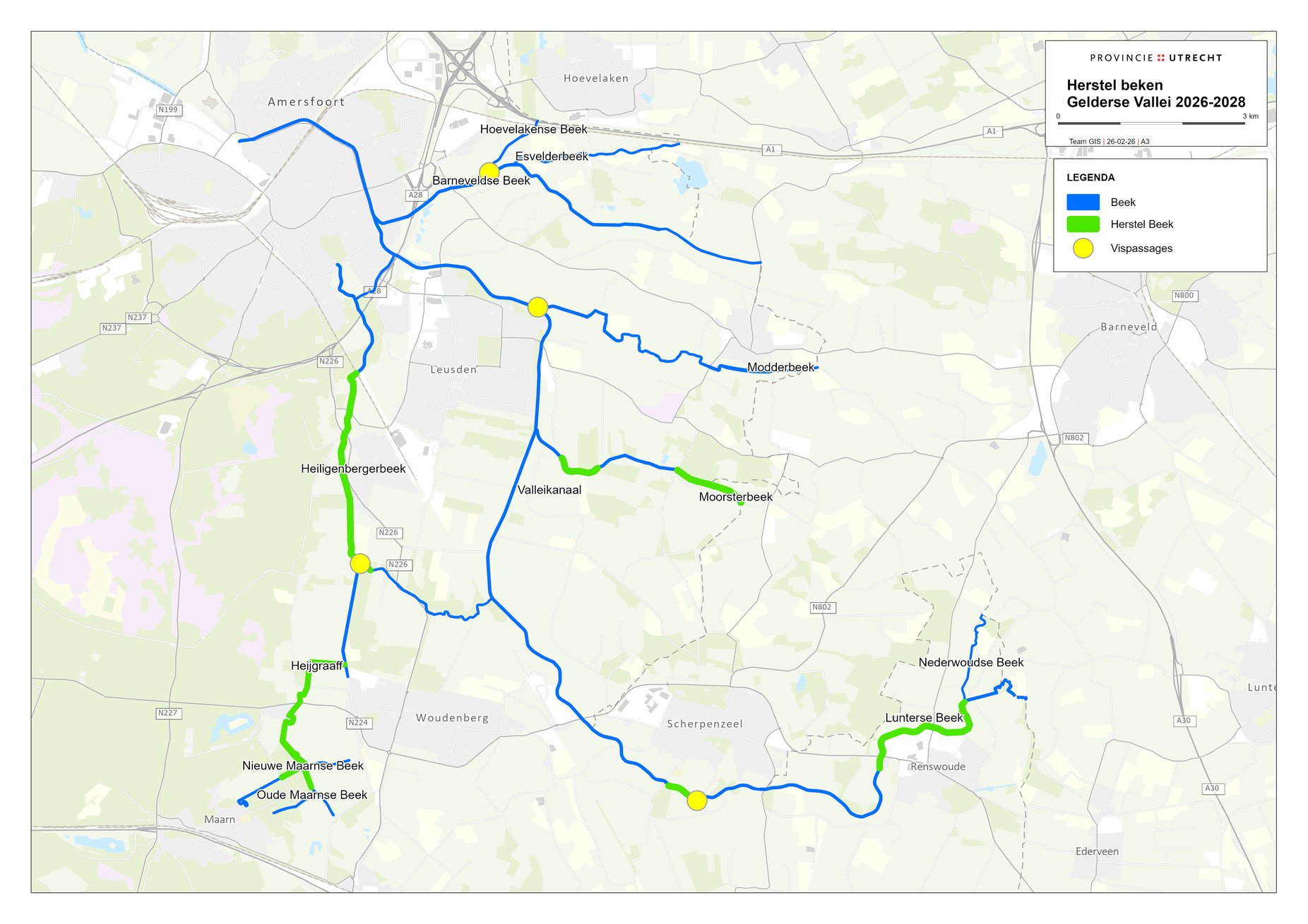 Het eerste grote project binnen deze samenwerking is de aanpak van beken in de Gelderse Vallei. Veel beken zijn na de Tweede Wereldoorlog aangepast en rechtgetrokken voor de landbouw. Deze zogenoemde ‘gekanaliseerde beken’ zorgen voor een snellere afvoer van te veel regenwater, maar daarvan zijn de laatste jaren nadelige gevolgen te zien: water stroomt te snel weg, waardoor er in droge perioden een watertekort ontstaat. De komende 3 jaar wordt in totaal 12 kilometer beek hersteld, waarvan het grootste deel aan de Lunterse Beek en de Heiligenbergerbeek. De planning van de werkzaamheden vindt momenteel plaats. In aanloop naar de uitvoering betrekken beide overheden de belanghebbenden tijdig bij de verdere planvorming.