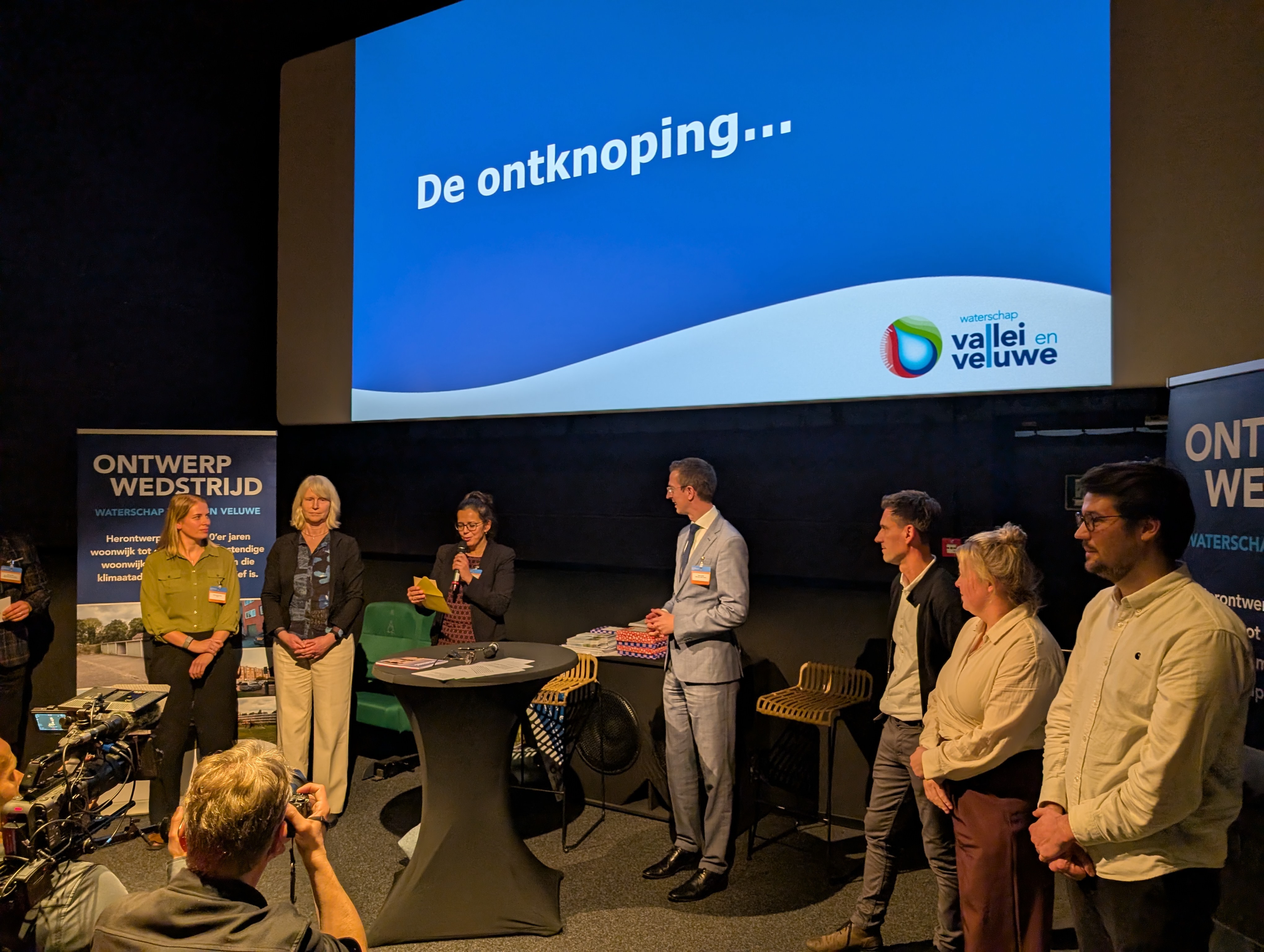 Mathilde Maijer (initiatiefnemer, algemeen bestuurslid Waterschap Vallei en Veluwe), Reimar von Meding (algemeen directeur KAW), Hans van Daalen (burgemeester Ermelo), Mariëlle Hoefsloot (directeur Federatie Ruimtelijke Kwaliteit), Chris van de Hoef (ateliermeester waterschap Vallei en Veluwe) en Carlo van Dijk (juryvoorzitter namens waterschap Vallei en Veluwe).