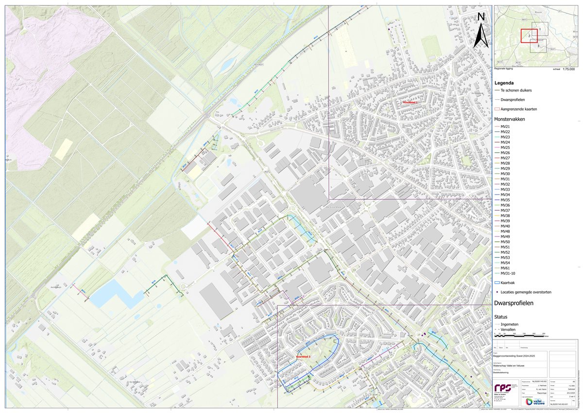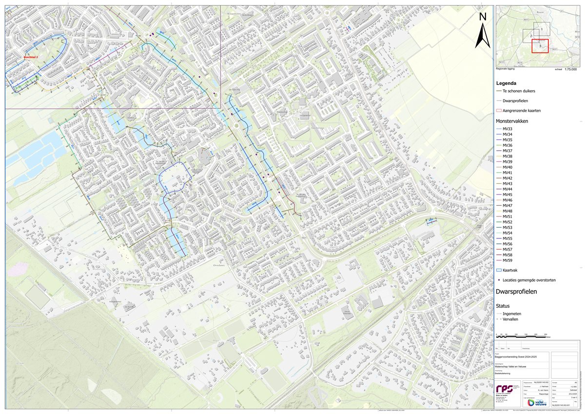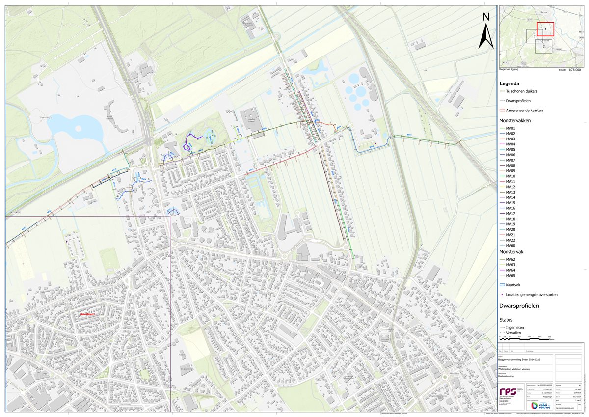 Hierop zijn de te baggeren watergangen en vijvers met 65 verschillende kleuren gemarkeerd. Deze liggen voornamelijk in het noorden en westen van Soest. De gemarkeerde watergangen en vijvers liggen langs de Boerenstreek, Clemensstraat, Colenso, Dorresteinweg, Dorsvlegel, Egge, Fazantpad, Graanakker, Hazepad, Herdersstaf, Hofstedering, Honingbij, Jachthoorn, Jachthuislaan, Koningsweg, Kornet, Krekel, Maatweg, Morgen, Nieuwegracht, Noorderweg, Park Vredenhof, Reespoor, Reigerpad, Stadhouderslaan, Sweelinckstraat, Tromslagerpad, Turfstreek, Vedelaarpad, Vredenhofstraat en de Zuidergracht. Al deze watergangen en vijvers worden tussen eind oktober 2025 en half maart 2026 gebaggerd.