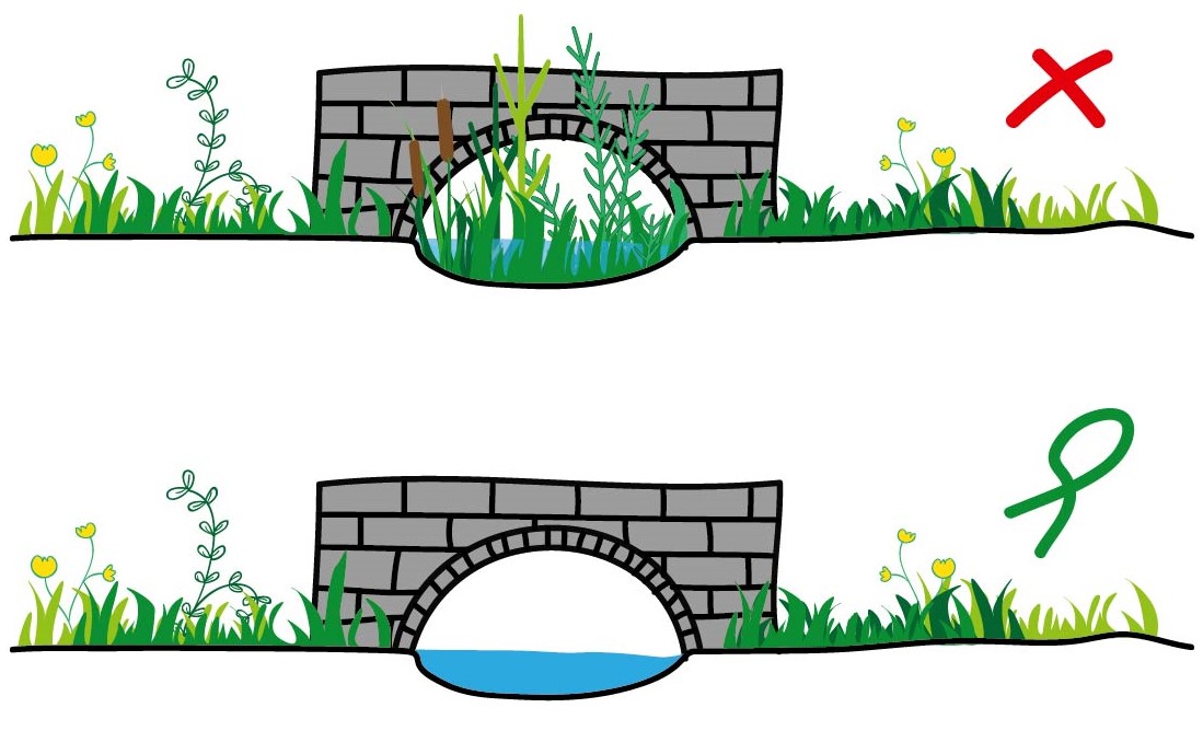 Het niet goed snoeien van struiken of bomen en/of verwijderen van in de sloot hangend hout.
